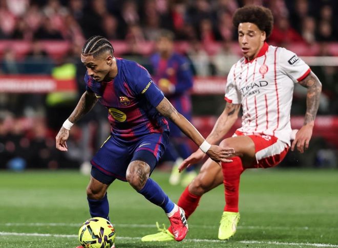 第63分钟,巴萨进行换人调整,巴尔德吉和巴尔德替补上场,拉菲尼亚和赫拉德-马丁被换下。第75分钟,罗卡突入禁区右侧,起脚低射。门将霍安-加西亚用腿把球挡出,拯救了巴萨。第82分钟,亚马尔兜射踢偏。第87分钟,贝尔特兰打进绝杀进球。巴萨轰然倒下!最后时刻,罗卡犯规染红下场。最终,巴萨1-2输给赫罗纳,爆出冷门。